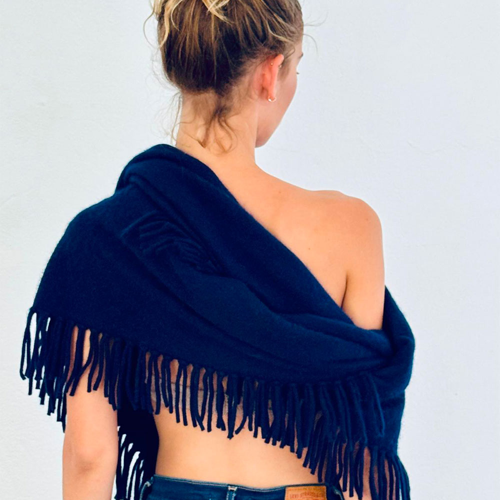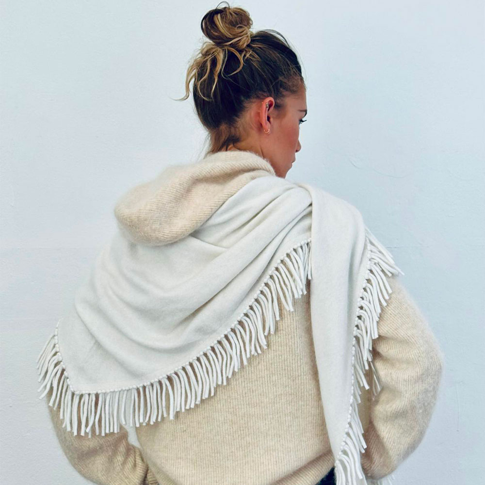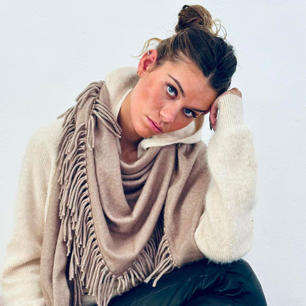 L’écharpe Davina IDA DEGLIAME est une pièce incontournable pour votre garde-robe d’hiver. Cette très grande écharpe triangulaire, ornée de franges, allie style et confort grâce à la qualité exceptionnelle de son cachemire de vison. L’écharpe DAVINA sera votre allié confort et élégance pour tout l’hiver. Taille unique. Dimensions : Haut du triangle : 2m40 + longueur franges : 10 cm