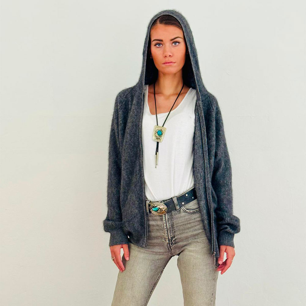 Sa matière noble et luxueuse offre une douceur incomparable et un confort réconfortant, idéal pour les journées fraîches comme pour les soirées élégantes.